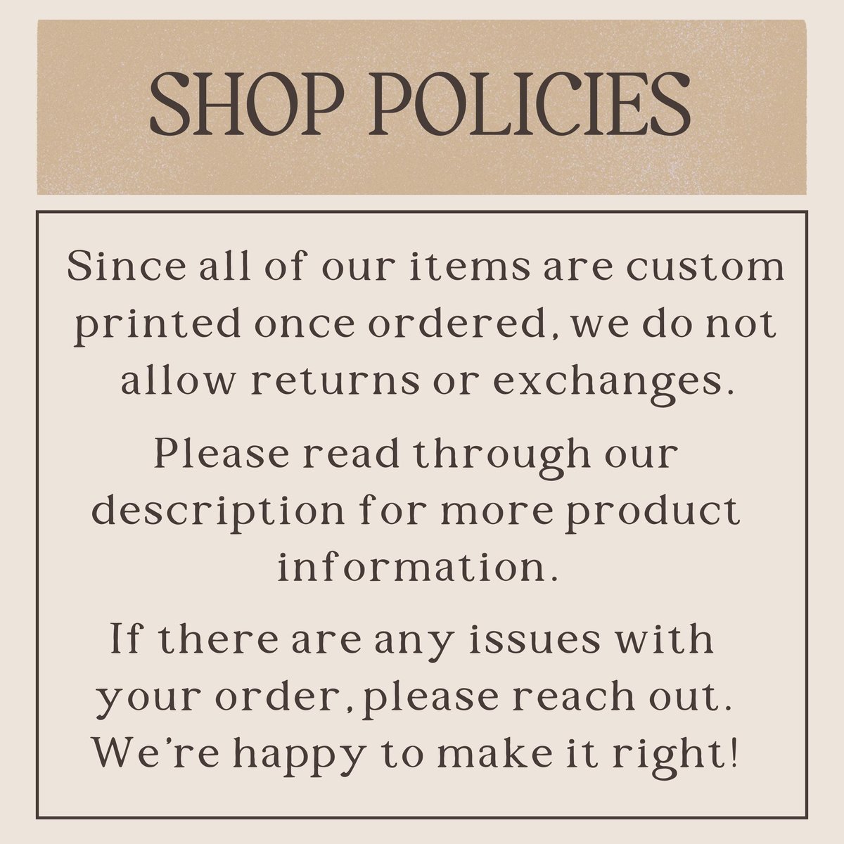 We hope you like our designs and would love to hear your thoughts, please feel free to share your photos when you receive your items!