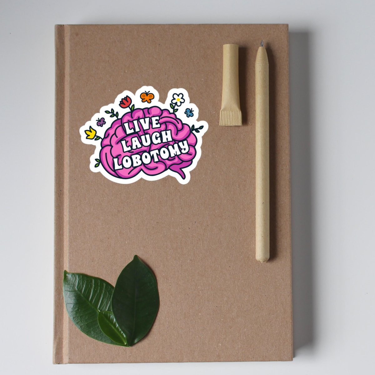 live laugh lobotomy sticker, brain sticker, funny meme sticker, gift for friend, dark humor