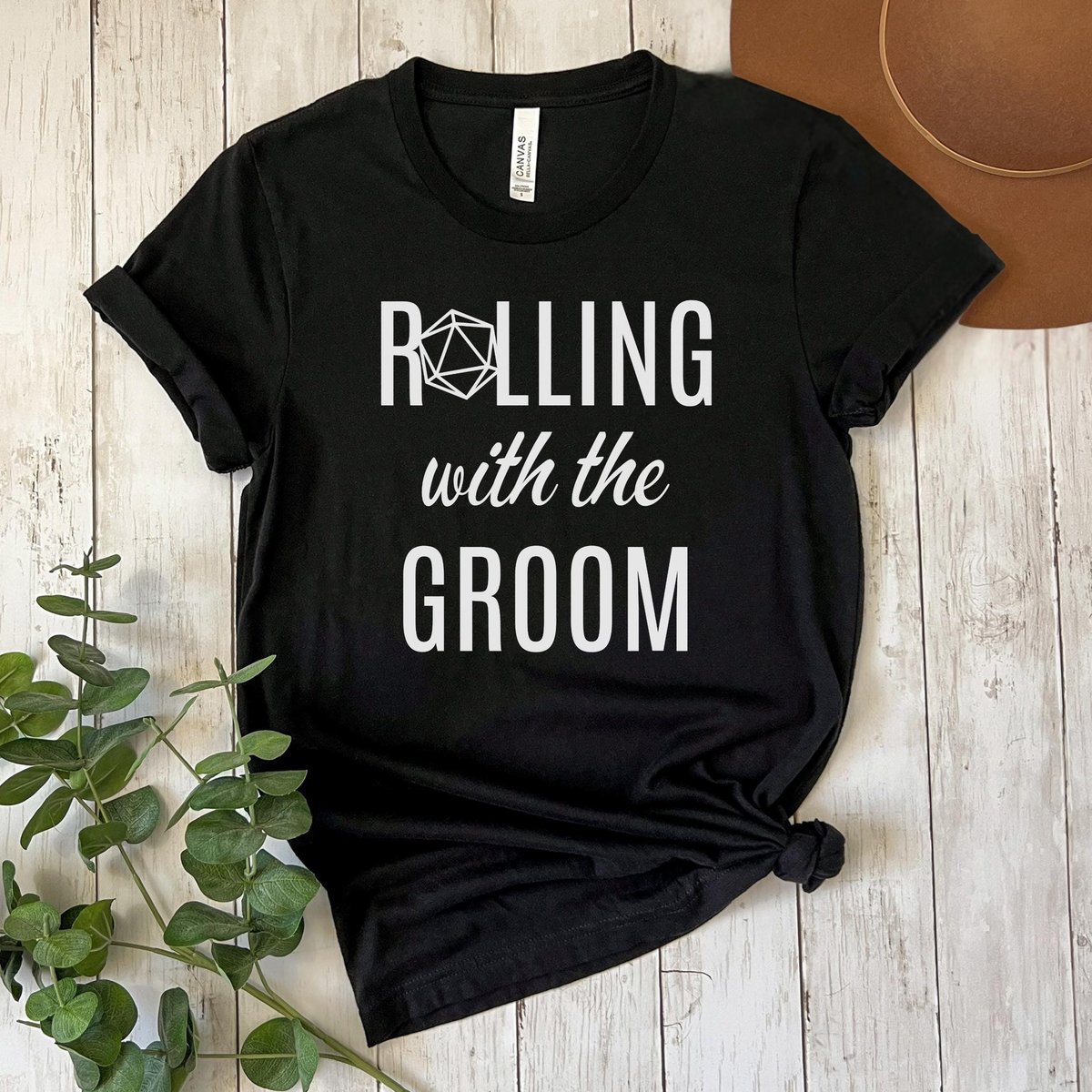 Nerdy Groom and Groomsmen Shirts, Rolling with the Groom, Bachelor Party Shirts, shirt for best man, ttrpg shirt, rpg player gift